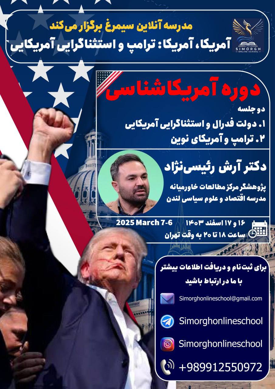 این دوره به بررسی بنیادهای ایدئولوژیک و ساختاری استثناگرایی آمریکایی، ساختار قدرت فدرال در ایالات متحده و ظهور ترامپیسم در سیاست معاصر آمریکا میپردازد. نگاهی انتقادی به ریشههای نهادین و فکری ایالات متحده تحت راهنمایی دکتر آرش ریسینهژاد، کارشناس سیاست خاورمیانه.
